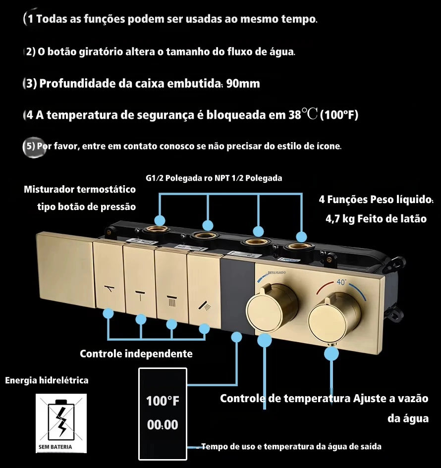| Entradas da ducha | 4 entradas de água |