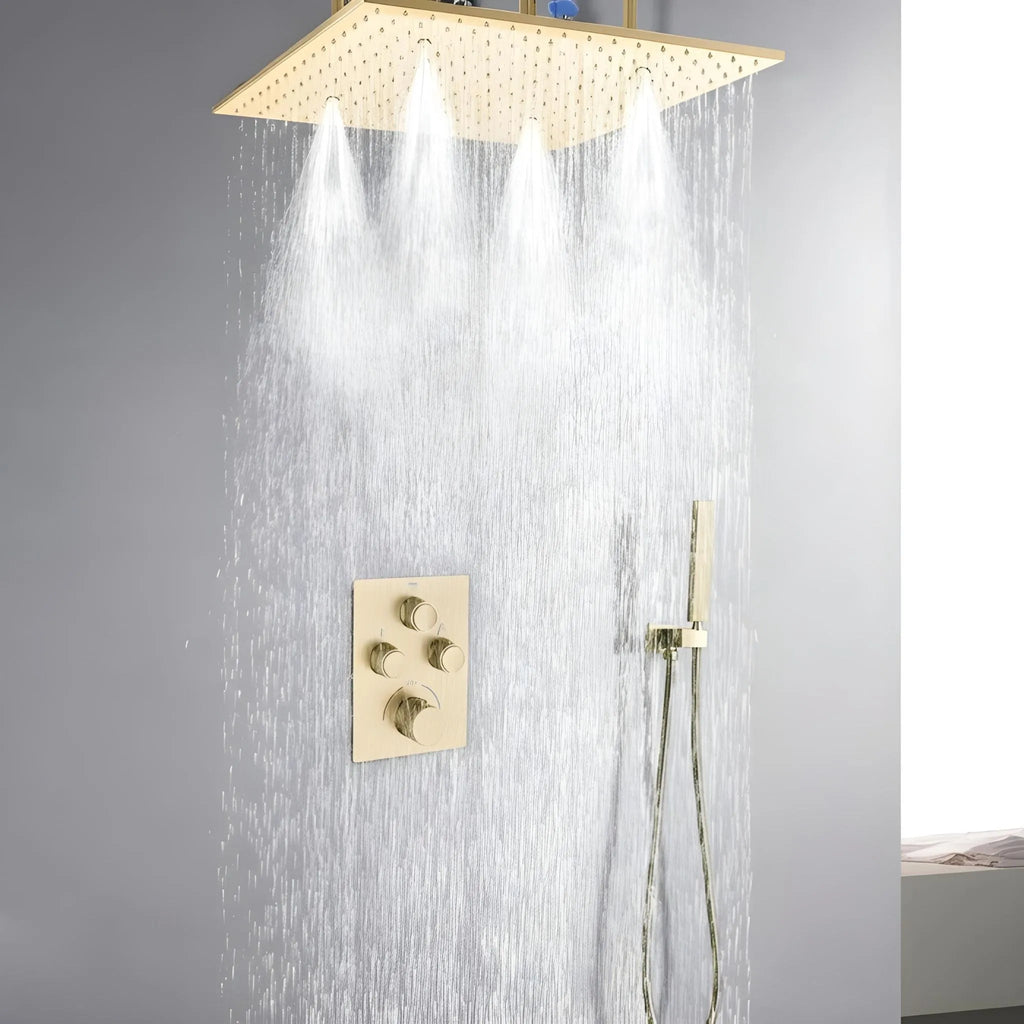 Ducha de teto quadrada 40x40 com estética “spa”.