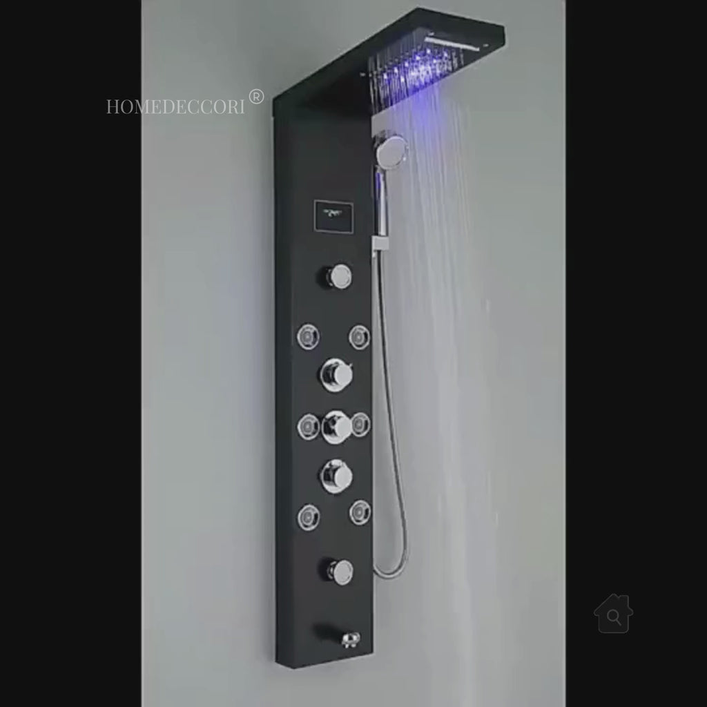 A ducha de hidromassagem vertical AquaRelax da Homedeccori é uma peça que combina um design contemporâneo com funcionalidades avançadas. Fabricada em aço inoxidável 304, ela não adiciona apenas um toque de alavancagem ao seu ambiente, mas também oferece durabilidade excepcional. Com seu recurso de LED azul, ativado pelo fluxo da água, ela proporciona sessões de cromoterapia, confiantes para o seu relaxamento durante o banho.