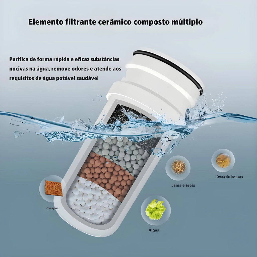 • Membrana cerâmica de diatomita: retém sedimentos, areia, ferrugem e partículas sólidas.